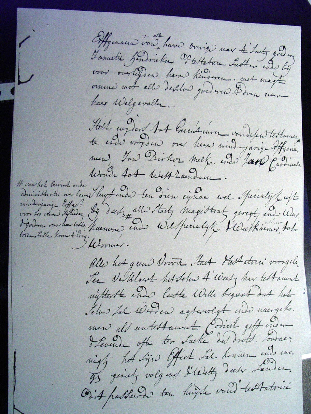 Notarisakten: 18 Op 5 Mei 1696 is een Notarisakten opgemaakt. De akte is een langslevende contract tussen beide echtlieden.