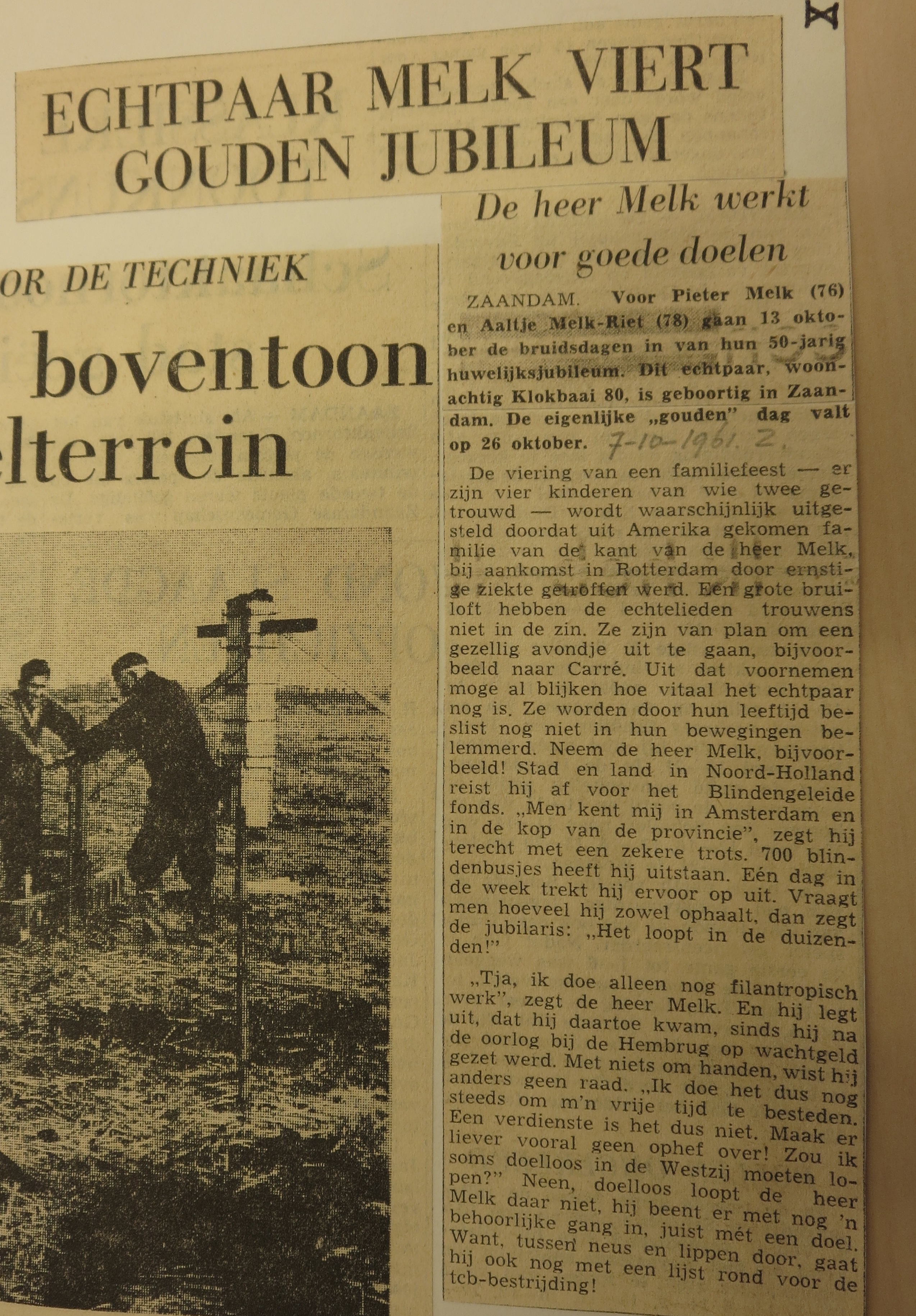 Lammert Cornelis Melk had in 1930 te Zaandam als beroep: houtwerker, balkenlosser. 207