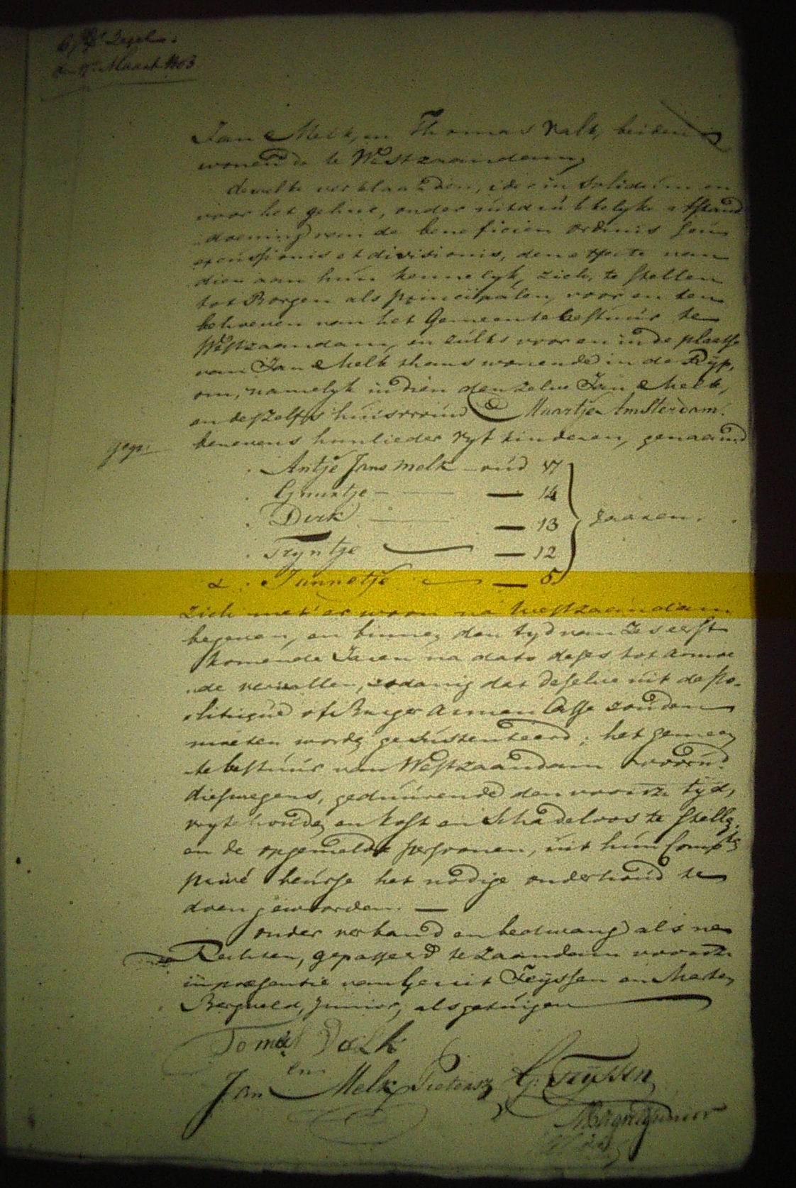 Dirk Jans Melk had in 1696 te Wormerveer als beroep: boek 5798 akte 123