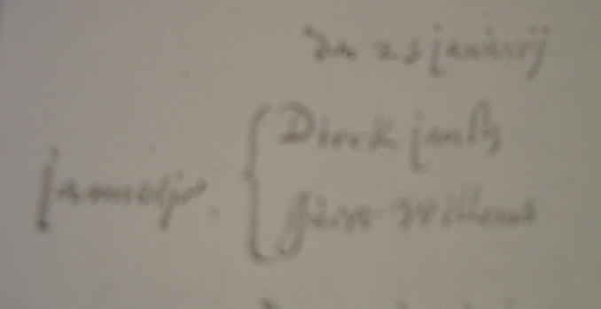 Dirk trouwde vervolgens met Trijn Willems [108] 14 voor 1677. Trijn werd geboren rond 1640 in Wormer.