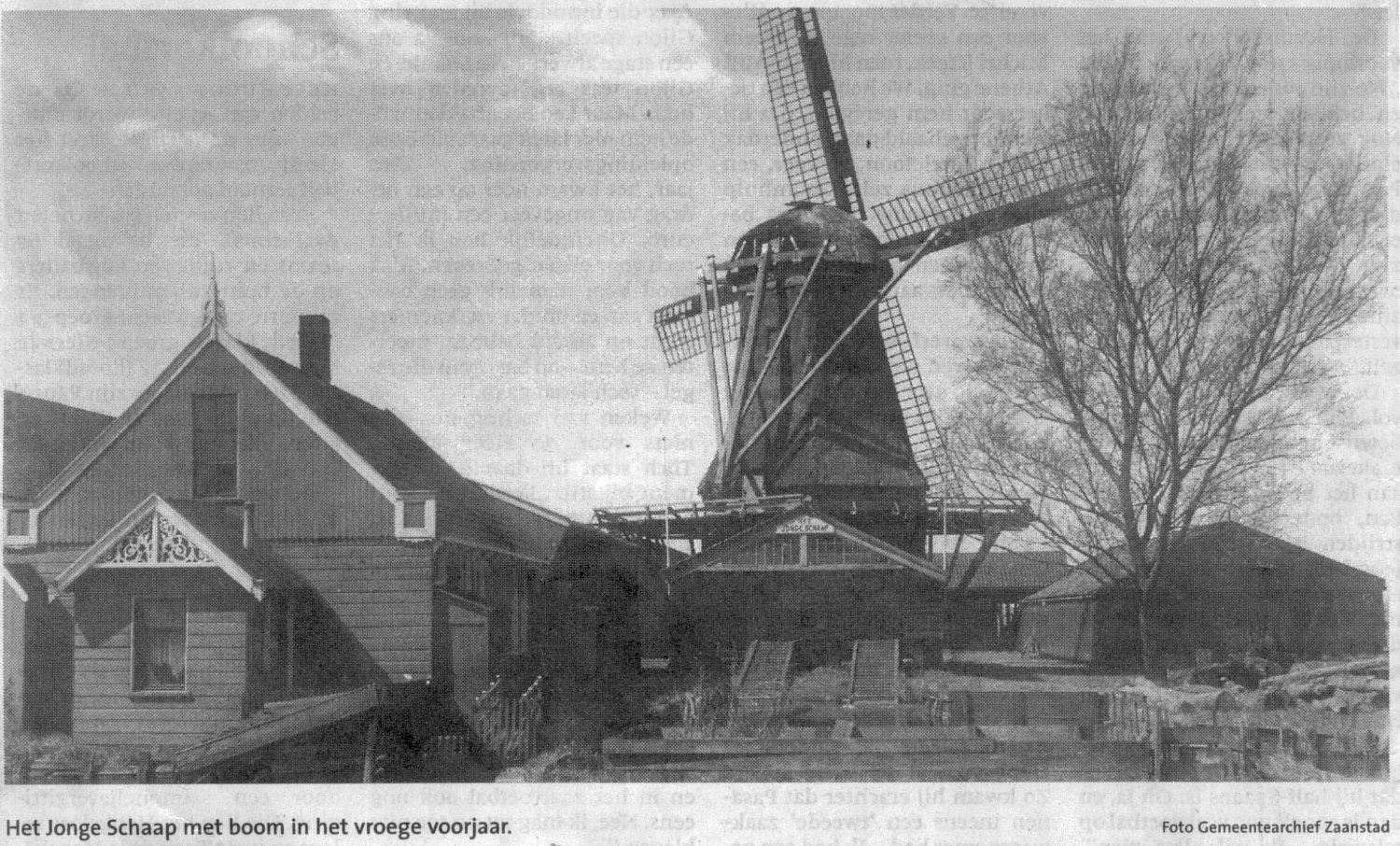 Achter het raam, in de zon, tussen voorwerpen van zelf gedraaid hout en schilderijtjes van molen Het Jonge Schaap, leunt de 94-jarige Lammert Melk achteruit. Broos maar blij. Binnenkort keert het verloren 'Skaepie' uit zijn kinderjaren weer. Al dagen zit hij zo voor zich uit de toespraak te repeteren voor vanmiddag, als hij het bouwbord op de Zaanse Schans heeft onthuld. Staand wil hij spreken, 'want dat komt beter over'. En zoals hij daar zit, maakt zijn verhaal al zo'n indruk: ,,Dat ik als jongste zoon van Kees Melk, de laatste molenaar twee๋nzestig jaar na de sloop hier mag wezen om getuige te zijn van de voorbereiding om Het Jonge Schaap opnieuw te bouwen.''.